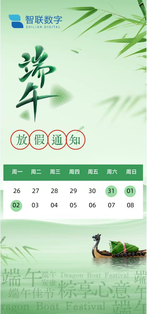 在此放假期间,如您有任何业务问题,可随时联系我们,我们将以更杰出的服务为您保驾护航。再次谢谢您对智联数字一直以来的关注与支持。