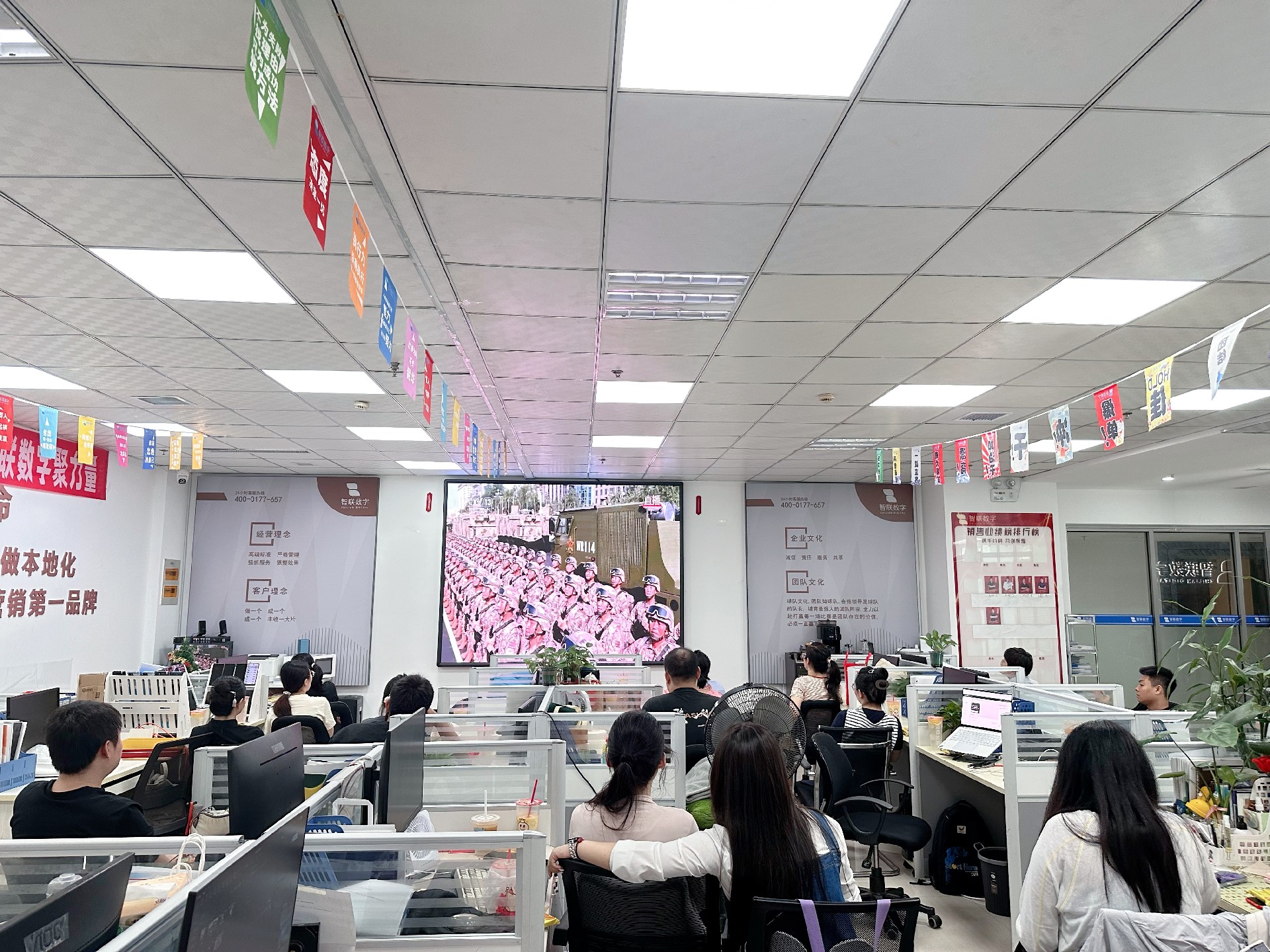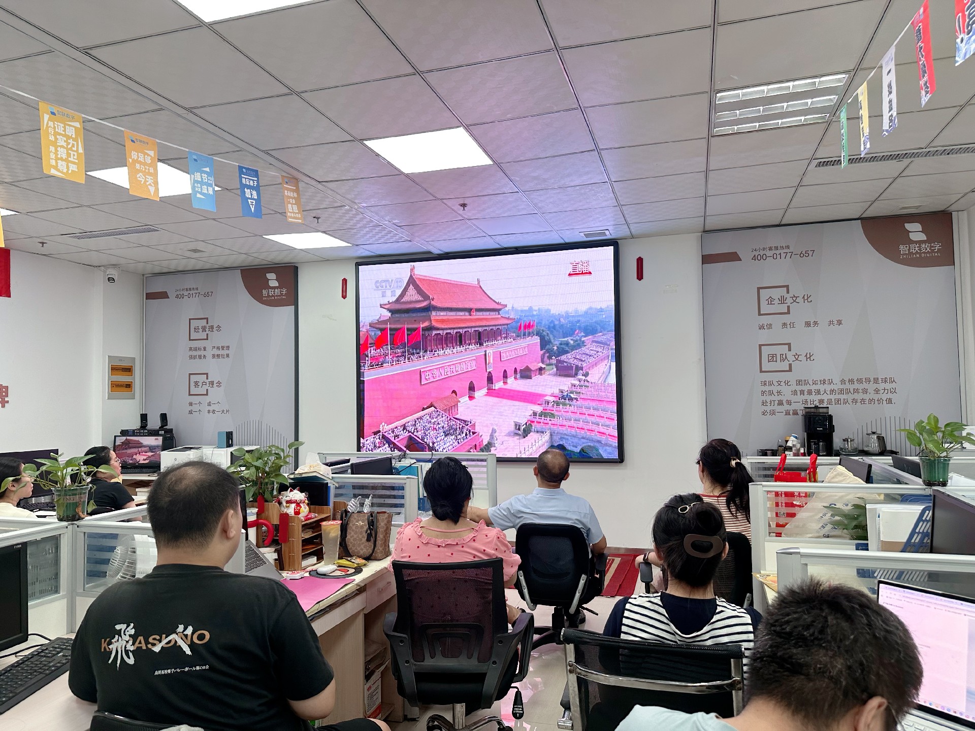 9月3日上午,纪念中国人民抗日战争暨 世界反法西斯战争胜利80周年活动在北京天安门广场隆重举行。智联数字统一安排组织全体员工集中观看实况直播,共同见证这一承载民族记忆、彰显大国担当的历史时刻。